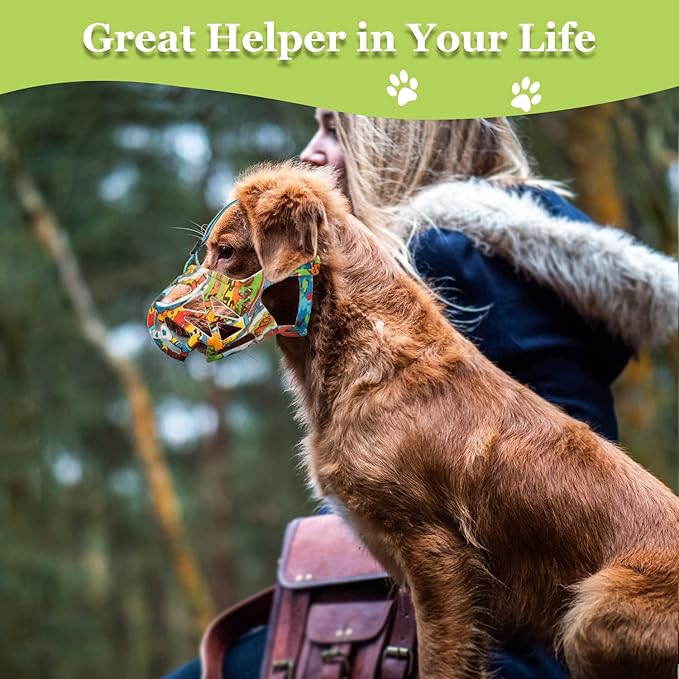 Dog Muzzle, Printed Basket Muzzle for Small Medium Large Dogs Dachshund, Beagle, German Shepherd, Breathable Pet Muzzles to Prevent Biting Chewing Scavenging, Allows Panting and Drinking