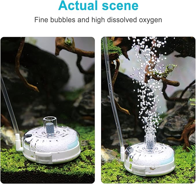 - Perfect Design: Round and ultra-thin design, small size, saving space in the fish tank, compatible with air pump wattage >1W. (Air pump and air tube are not included in the package) Please prepare an air pump suitable for this filter according to your fish tank size