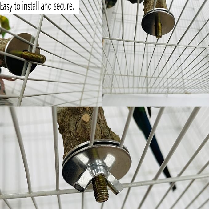 - Easy to install: Each bird stand comes with a metal wing nut and built-in bolts. Just fasten the wood branch perch easily onto the cage with the screw.