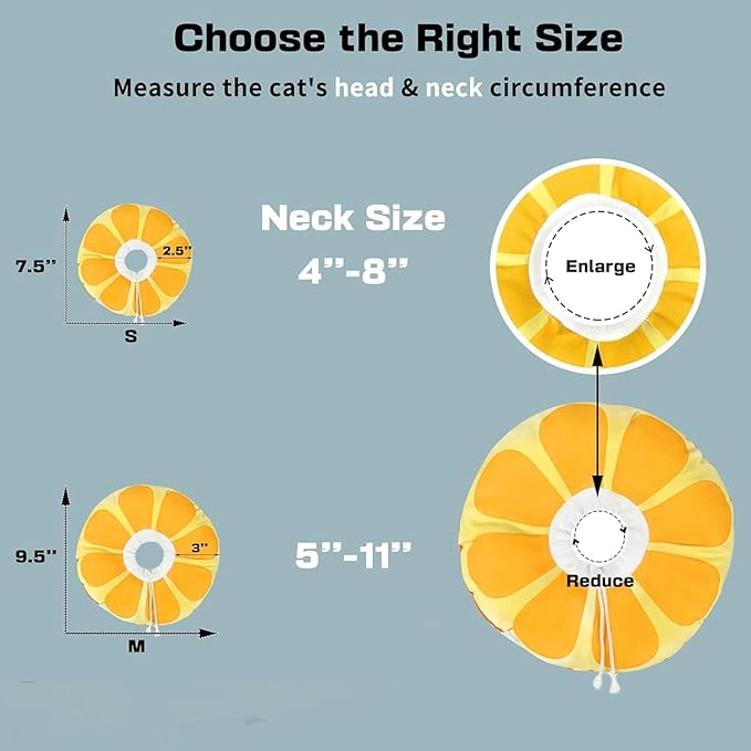 - Suit for all Size of Cats: We offer 2 sizes of cat cone, and the middle of each cone is adjustable, ensuring a definite fit for your cat. Size M fits (9.5 "x9.5 "x2.2โโ) cats with a neck circumference of 5-11 inches