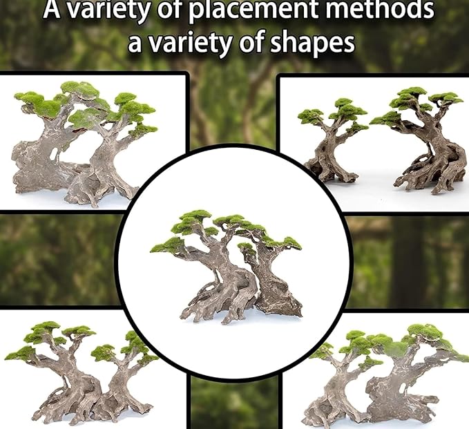 - Realistic Coloring- Looks like a real bonsai tree! This decoration is beige and gray colored with faux moss to make it look more natural and visually appealing in your tank. Itโs a perfect Zen, calming accent to your room.