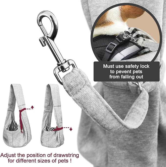 - SAFE DOG CAT SLING: Although Soft and breathable fabric can make your pet feel comfy and easy inside the sling bag,he may still feel boring and try to jumping out sometimes. But don't worry,We will provide you a safety rope with a hook to connect dog's collar/harness and sling strap,then your puppy won't falling out accdiently.