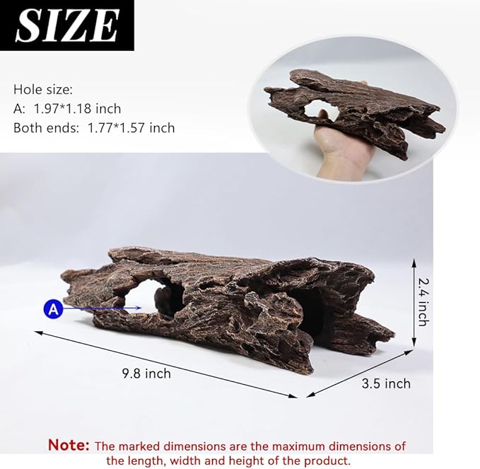 - Size: 9.8*3.5*2.4 " (size can be read through detailed pictures). The fish tank ornament is suitable for small aquarium pets, such as fighting fish, hermit crabs, crayfish, sucker fish, guppy, etc., or small crawling pets