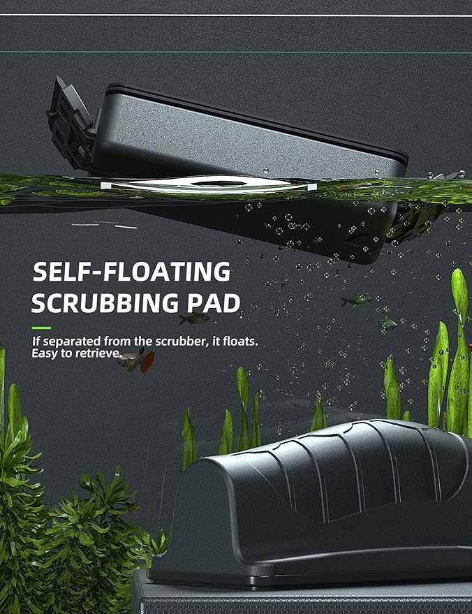 - Simply move the no-scratch, felt-lined handle and inside your aquarium, the scrubber follows, cleaning as it goes