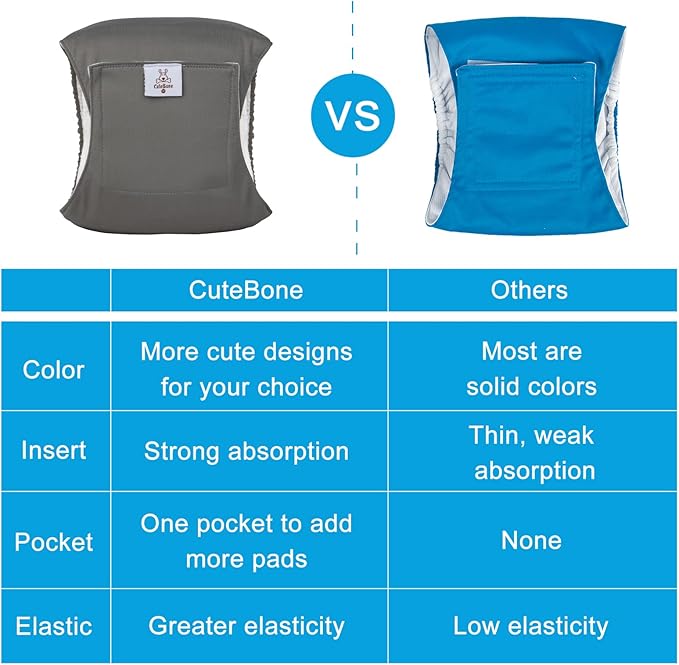 - CuteBone male dog diapers are designed with comfort and durability in mind, they’re perfect for untrained puppies and dog’s incontinent. These soft doggie diapers help your pet keep clean and dry between walks.