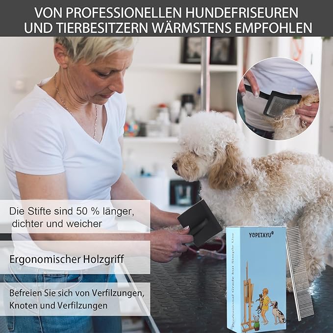 - [Highly Recommended] Made for professional groomers with a cushioned pad that retracts the soft and scratch free pins to grasp tangles and knots. Our brush has denser, and softer pins to save time and energy during pet grooming. when compared to the competition β each pin is approximately 1 inch long.