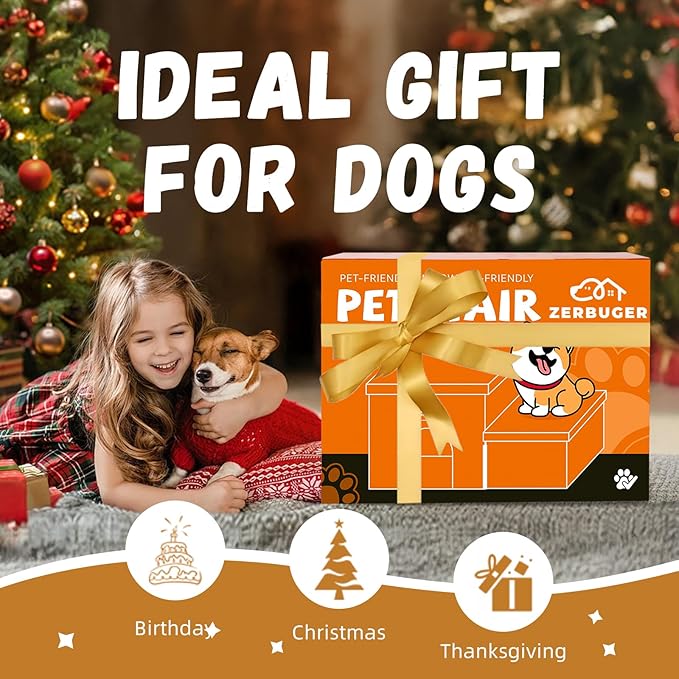 - A TOUCH OF LOVE FOR YOUR HOME: Zerbuger stairs are designed for pets and kids 3+. For your pets, our sturdy dog stairs provide a stable, secure way for dogs up to 150 LBS to climb onto furniture or beds. For your little ones, our stairs provide a safe and easy way to climb onto the bed. No more struggling or asking for help. It's a great way to encourage their independence while ensuring their safety. Our stairs add a touch of warmth and functionality to your home, creating a cozy and happy environment for the whole family.