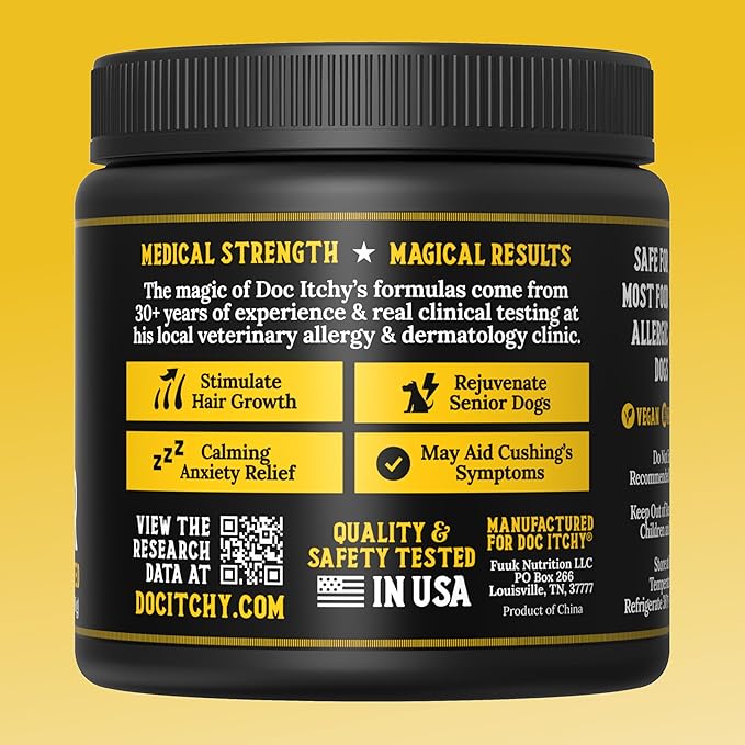 - DOC ITCHY: A US Veterinary Dermatologist with over 30 years of Allergy & Dermatology experience made the FIRST & ONLY high-dose, non-prescription pet treatments proven effective for small to large dog breeds
