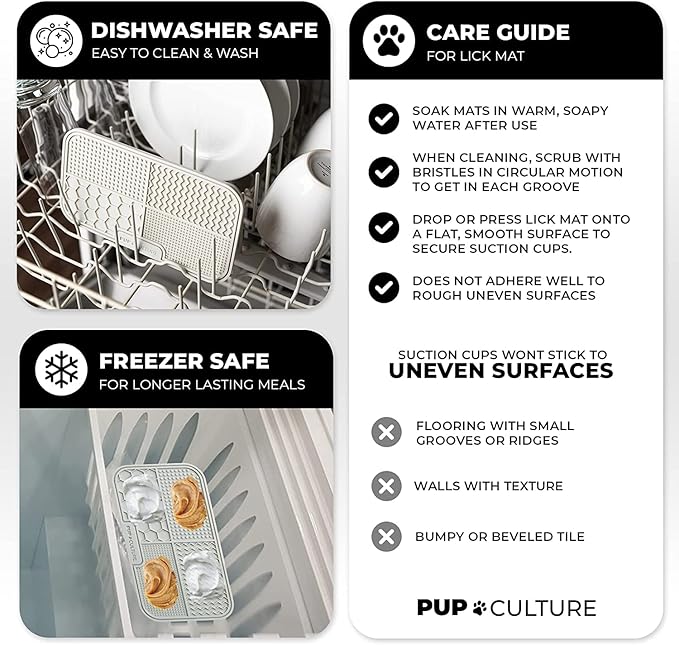 - SLOWS DOWN EATING HABITS. Does your pup eat every meal like it’s his last? Now you can stop your dog from biting off more than he can chew with Pup Culture’s Dog Licking Mat. Its unique, suctioning design outperforms the typical dog bowl with heavy-duty material that entertains your pup for hours on end, all while providing the nourishment he needs.