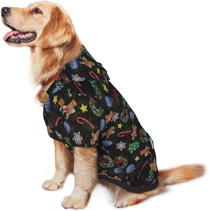 Xmas Tree Reindeer Ginger Cookie Hoodie,Christmas Cosplay Dog Clothes with Pocket and Hat Winter Clothes Sweaters Xx-Large