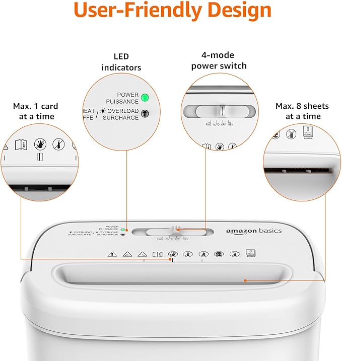 Amazon Basics Cross Cut Paper and Credit Card Shredder for Security - 8-Sheet, Heavy Duty, White