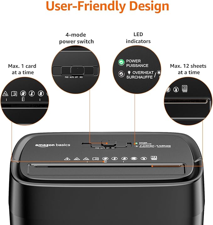 Amazon Basics Cross Cut Paper and Credit Card Shredder, 12 Sheet (New Model), Black
