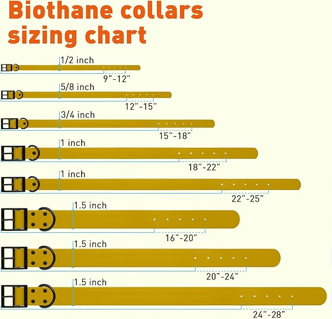 • Accommodates all breeds and dog sizes, with 8 lengths and 5 widths to select from. Widths from 0.5" to 1.5" and lengths from 9" up to 28" offer a collar to fit small, medium, large and giant dog breeds.
