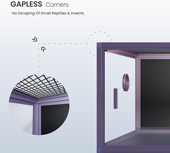 - 【Easy Maintenance】Front opening reptile terrarium with door handles included for easy cleaning & feeding. No more suction cup problems or unsightly fingerprints all over. The substrate barrier keeps the substrate in place. Our tempered glass doors are durable enough to withstand scratching.