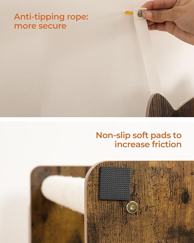 - Sturdy, stable and safe: with smooth veneer particle board for durability, an oversized base with non-slip mats, pure metal components and anti-tip kits, and then a selection of the most stable triangular structures, this cat scratching tree provides a safe habitat for your cats