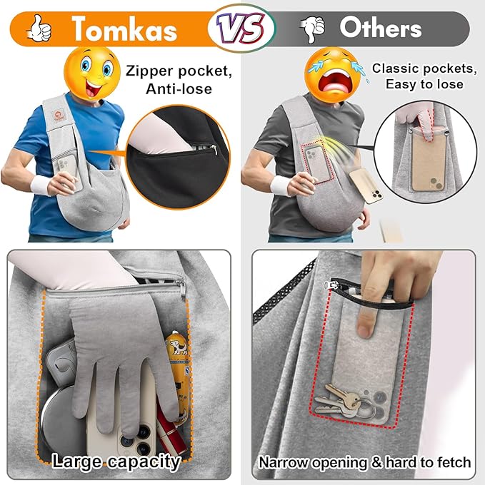 - Sufficient Safety: pets can be easily put into TOMKAS small dog carrier sling after a brief acclimation. You just put your dog in it, attach the safety buckle to the leash buckle on the vest or harness. If your pet wants to jump out of the pouch, the safety belt will stop it from this dangerous behavior and keep your puppy safe. TOMKAS small dog sling is very reliable in terms of safety.Remember, never tie the safety buckle to the collar, it could hurt the dog's neck if it jumps out.