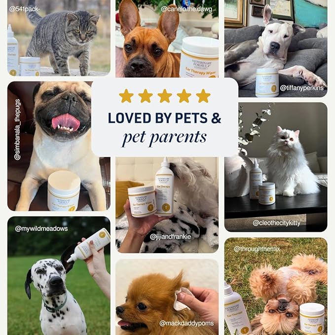 Veterinary Formula Clinical Care Ear Therapy Wipes, 100ct – Cat and Dog Ear Cleaner – Help Relieve Itchy Ears Quickly & Effectively Remove Dirt, Debris, and Foul Odor