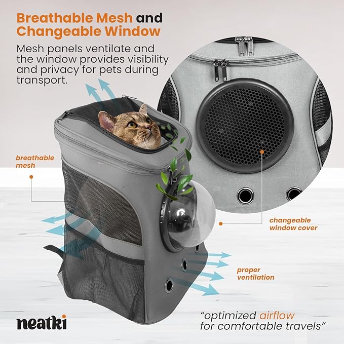 - Safety Above All β Travel with peace of mind using our backpack cat carrier or dog backpack carrier. Lockable zippers keep your pet secure, while small top pockets with adjustable windows allow quick checks without compromising safety.