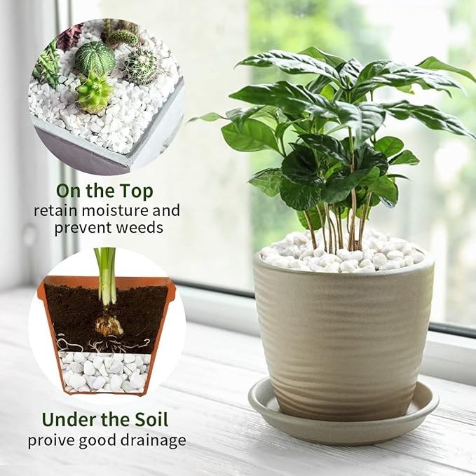 - 【White Stones】Small white stones are polished without sharp edges and will not harm your succulents or potted cactus. Covering the soil with a layer of white gravels will not only make your succulents stand out, but also keep the soil moisture and help plants grow better.used white stones to top the soil in houseplants,makes everything look really clean and keeps the gnats away