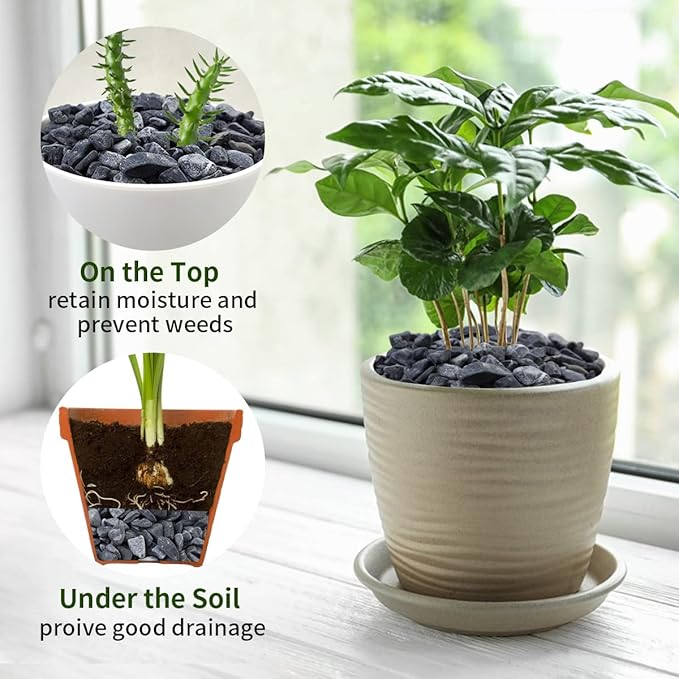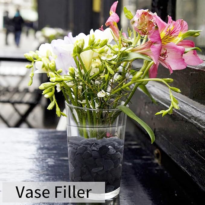 - 【Black Stones】FANTIAN black pebbles are perfect for home decor projects, such as potted plants, vases,succulents, display glass jars, glass hurricane candle holders, cactus, bamboo plants,rock gardens, yard, paving the way and more