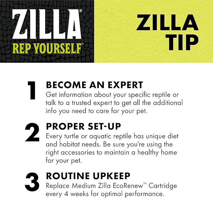 - ZILLA ECORENEW CARTRIDGE is made from fibers that are biodegradable and fully compostable, featuring a NoDrip design to minimize water mess during changes. Change every 4 weeks for optimal performance.