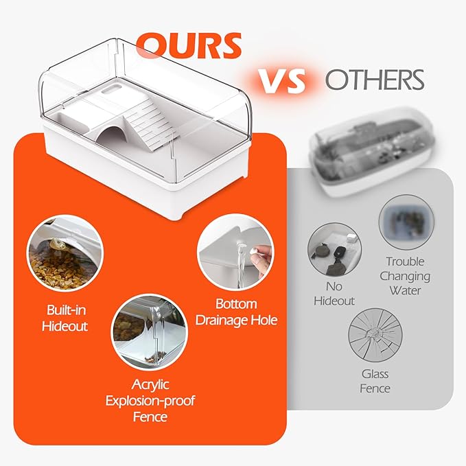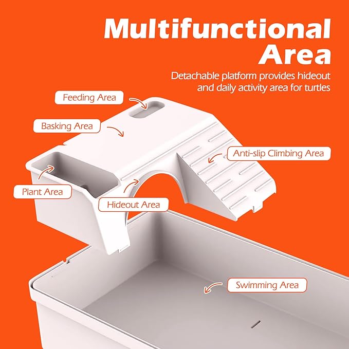 - Turtle Habitat Kit with Hideaway: Upgrade your turtle’s care with a spacious tank featuring a built-in hideout for rest and security. The enclosed area reduces stress, encourages natural hiding behavior, and helps your pet feel safe and comfortable
