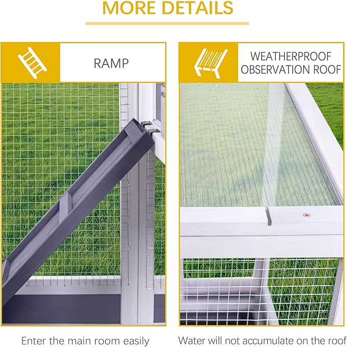 - Reasonable space design: Pets enjoy a raised nest box and roomy resting area with a built-in ramp for easy navigation. Observe pets without disturbance in their space