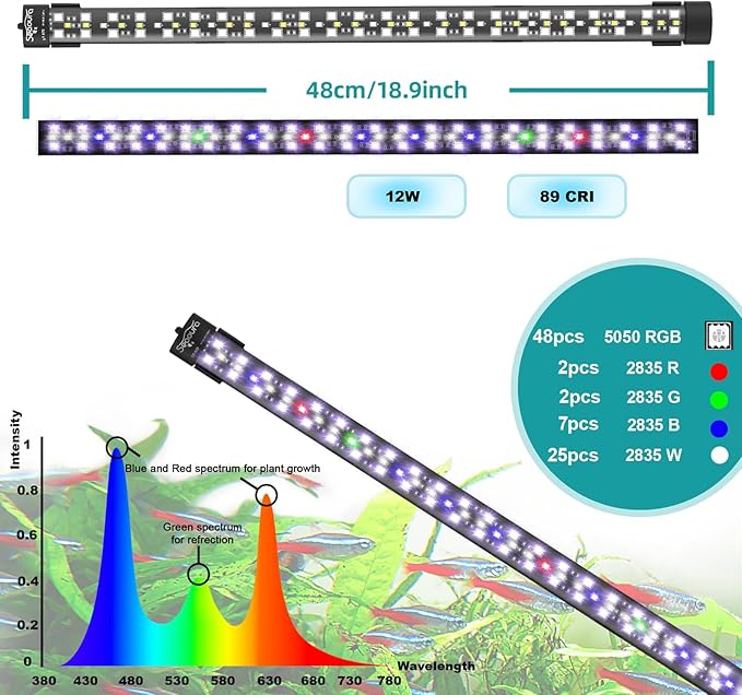 - Full Spectrum+Single-Color Modes: Our fish tank light can switch between full spectrum,7 single-color, cycle modes, providing a variety of rich options to meet your lighting requirements. Whether you want to simulate a natural ecosystem or enhance the aesthetics of your aquarium, it can be easily accomplished