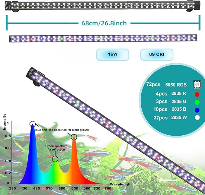 - Waterproof and Safety-Certified: With an IP68 waterproof rating, our aquarium led light can be safely submerged in water without any risk of damage. Operating at a low voltage of 20V ensures the safety of both your fish and yourself during installation and use