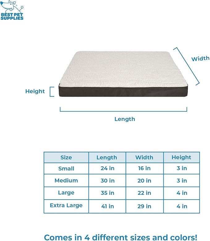 Best Pet Supplies Cute Dog Crate Mat Flat Bed with Waterproof Exterior, Thick Orthopedic Egg Foam Mattress, and Soft Sherpa Fleece Cover for Small, Medium, and Large Breeds - Brown, 35X22X4
