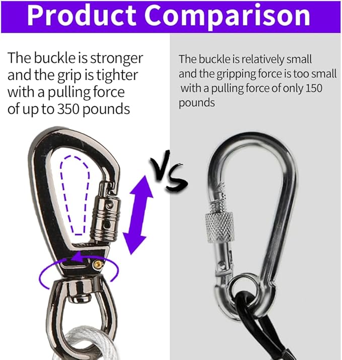 - Upgrade Heavy Duty Buckle & 360ยฐ Tangle Free-dog cable use heavy duty locking carabiner, stronger and more durable, with a 360ยฐ smooth rotation axis, your dog can run freely without getting tangled.