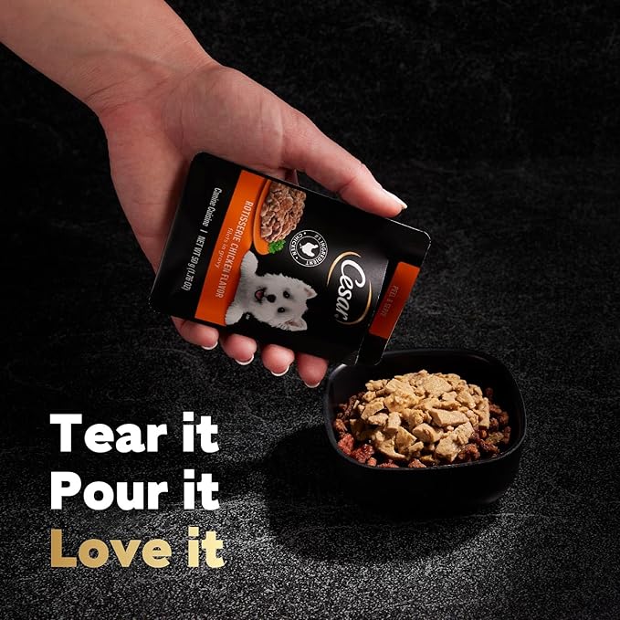 - Chicken is the #1 Ingredient: Cesar Rotisserie Chicken Flavor Mini-Pouches have chicken as the #1 ingredient so your dog gets a flavor they know and love
