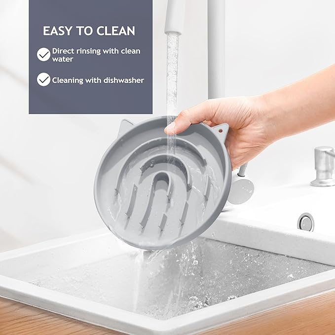 - The innovative fingerprint maze design at the bottom of our bowls effectively slows down your pet's eating speed, extending meal times and preventing choking. This cute, personalized, and unique maze design also helps distract and calm your puppy or kitty's anxiety.