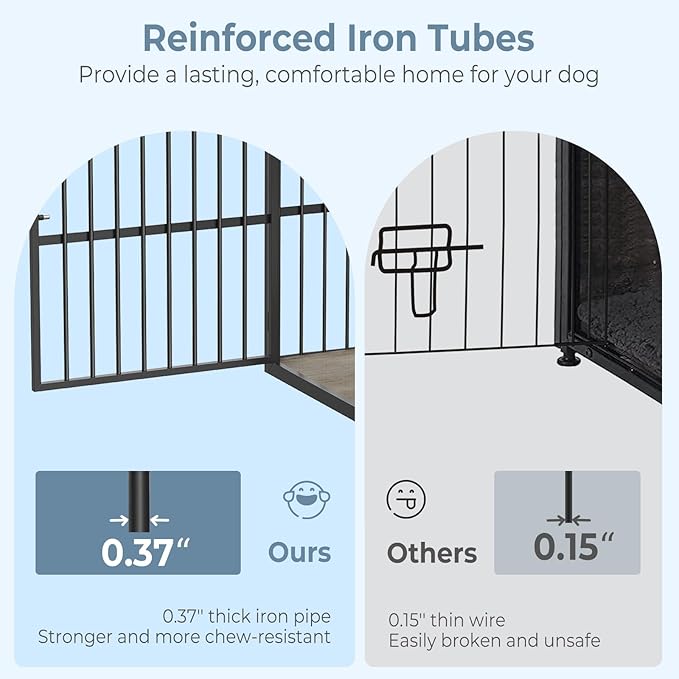 - 【Sturdy and Chew-Resistant】This xl dog cage furniture is made of premium particle board and iron pipe, which is stronger and more chewy; It will accompany your dog throughout the growing stages; It's an ideal gift for your dog