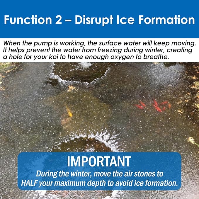 - DUAL-FUNCTIONAL - This pond air pump can not only work as a pond aerator, but also helps prevent ice formation in the cold winter months, ensuring your koi have a ventilation hole for breathing!