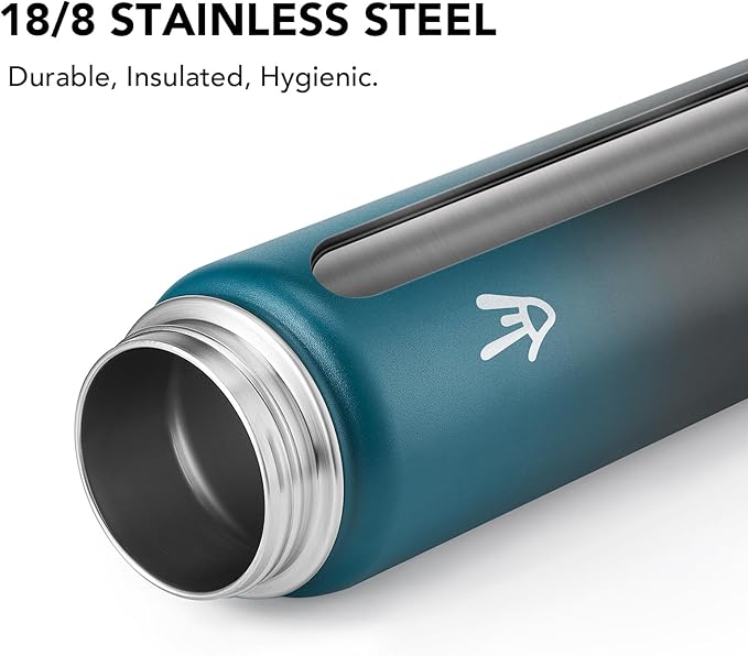 - Premium Quality: Through the upgraded, 32 oz insulated water bottleโs inner wall is made of food-grade 18/8 Stainless steel, and the outer wall is 201 stainless steel. Rest assured, our leakproof sports water bottle is 100% BPA-free, non-toxic, odorless, rust-proof, and absolutely safe for daily use.