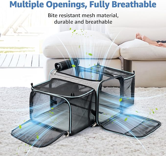 - 【Better Ventilation】This large rolling cat carrier has multiple mesh windows to offer optimal airflow and better visibility for your furry friend. Designed with 3 large entrances, pets can get in and out of the bag easily.