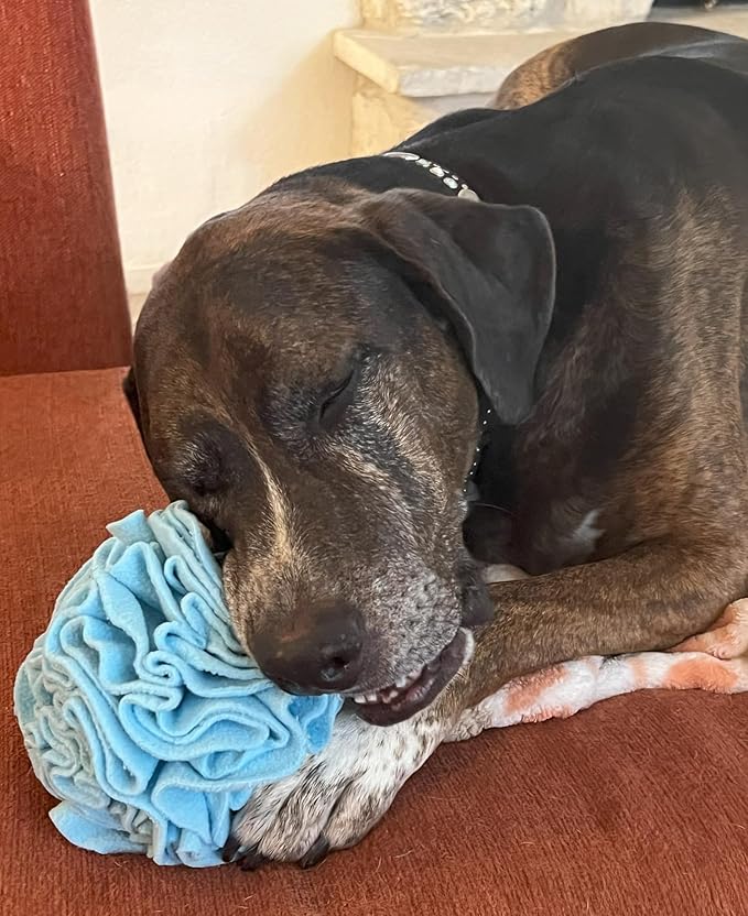 - Itโs a snuffle mat reimagined for medium to large mouths. This hide-and-seek toy is a great way to keep your dog engaged and occupied while also helping them develop their sensory skills looking for hidden treats as a reward during playtime! Folds of soft polyester fleece fabric hold small treats or even kibble for way-sensitive noses to sniff out and discover, hitting puppy paw-fection: play, forage, and reward.
