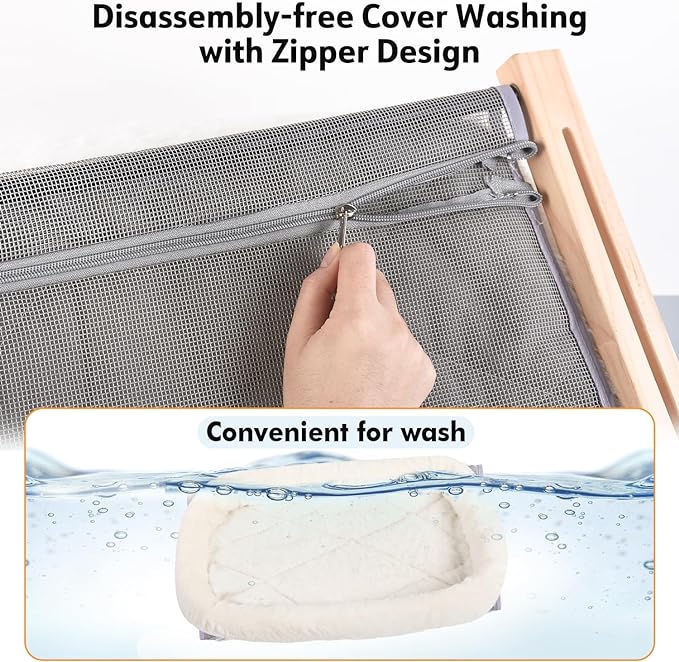 - Comfortable Cushion Bed Cover: This cat window perch is upgraded with thickened fluffy cushion bed cover, which give cats more comfort and safety while sleeping on it. The cover is made of soft plush fabric and cotton, perfect for keeping warm. Let your cats feel more comfortable while lying in this resting seat. It is of Velcro tape design, easy to remove for wash.