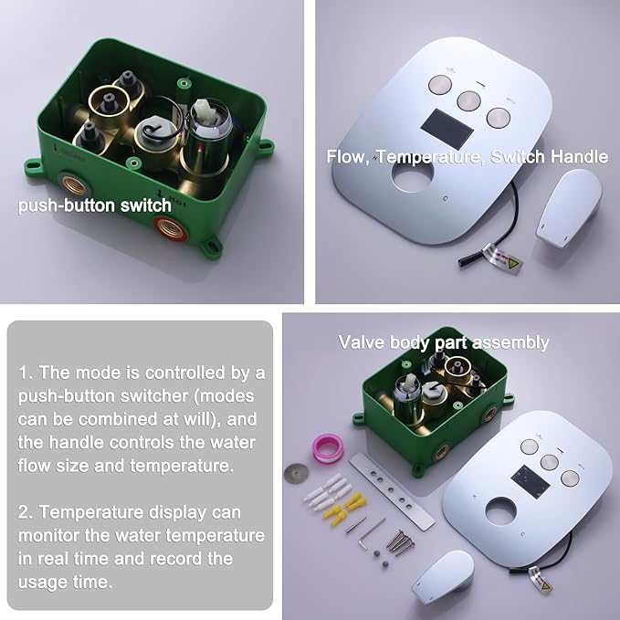 - Backflow Prevention & Stable Flow: Pressure-balancing technology prevents sudden temperature changes and ensures consistent water flow. There-mode push button and handle controls flow and temperatur
