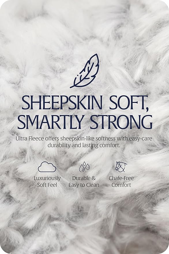 - ✅ All Ultra Fleece products have the softness and feel of genuine sheep skin but the durability and easy care properties of synthetic fibers