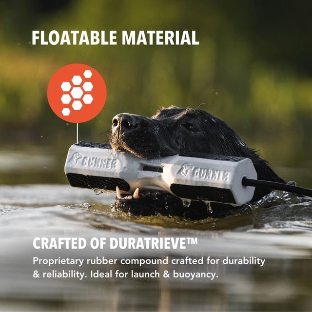 - DURABLE CONSTRUCTION: Crafted with DuraTrieve, a proprietary rubber compound designed for durability and reliability, this dog bumper withstands rigorous drill sessions and outdoor conditions. The weight encourages intuitive tossing and maintains ideal floatability in water, making it one of the best dog bumpers for water retrieving and a reliable choice among dog hunting gear. It dries quickly and can be cleaned easily with soap and water.