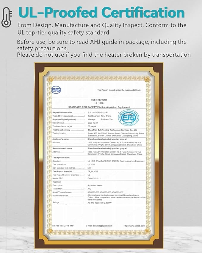 - ๐๐ก๏ธ[High Quality with Longer life span] ๐Before the digital aquarium heater delivery, we have 100% conducted a 72-hour heating test in water to ensure the safety of the product. Using a thick quartz tube, 1.5m/4.75 ft cable(U.S. UL Certified), high temperature resistant protective case which Prevents water plants from adhering to the quartz glass wall and protects small fish not touching the quartz tube