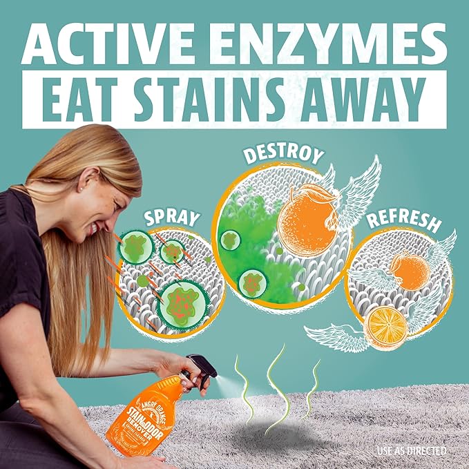 - POWERFUL STAIN FIGHTING - Angry Orange enzyme-active cleaner breaks down and eliminates stains from pet urine, feces and vomit.