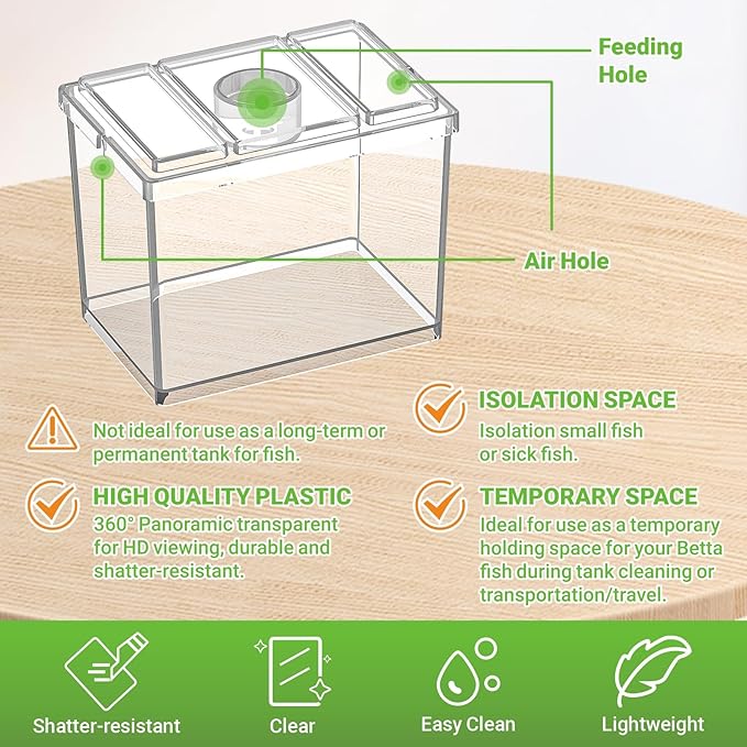 - Specific Uses For Product : [Temporary fish housing, Quiet environments, Betta fish tank]