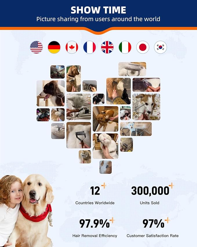 - ☀️【Reduce Shedding Significantly】KIZO ESLO️ double-sided shedding tool quickly demat and detangle pet undercoat rake and effectively reduces shedding by up to 97.9%, keeping your home cleaner and your pet's coat in excellent condition. Perfect for use during shedding season.