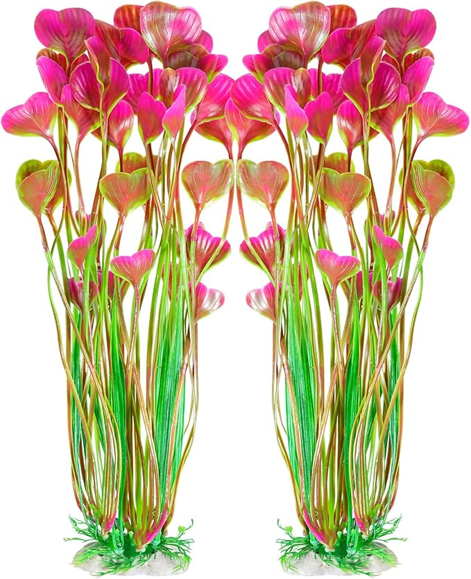 AQUANEAT Artificial Fish Tank Plants, Plastic Aquarium Accessories Large, 15.5 inch Red Decorations, 2pcs