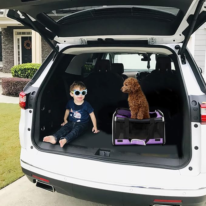 Carrying Bag for Yorkie Dog Travel Kennel Ventilated Softside Pet Carrier Tiny Dog Crate for Teacup Poodle 12lb Large Kitty Transport Cage with Cover Chihuahua Supply Purple