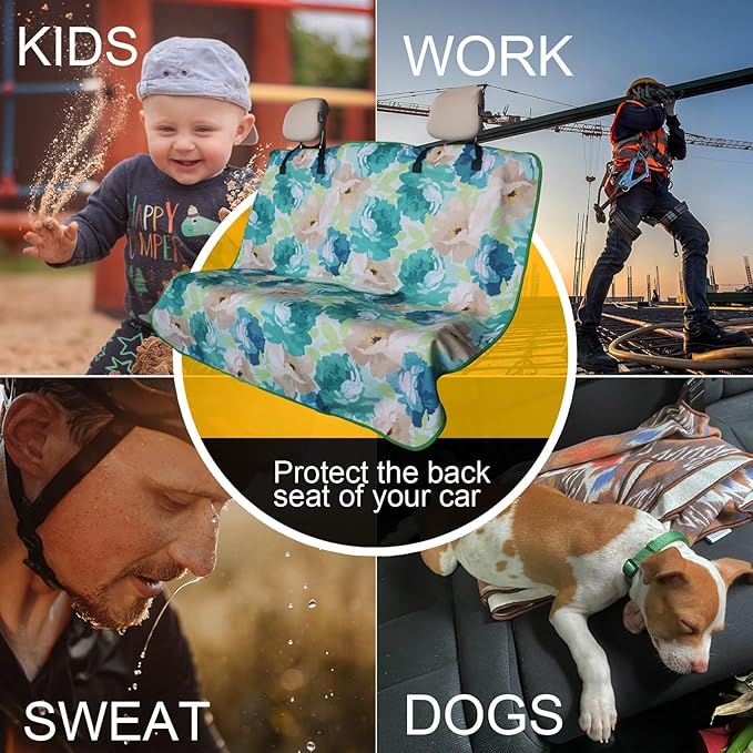 - Made From 3 Layer Material: (Front) Chrysanthemum pattern printed on towel cloth, which gives the rear seat cover a good look and a super long life. It is perfect for leather or upholstery back seats. (Middle) Waterproof fabric that is designed to guard your backseat against moisture and sweat. (Back) This rear seat cover are designed with a non-slip backing fabric that's super comfortable and won't slip off your back seat.