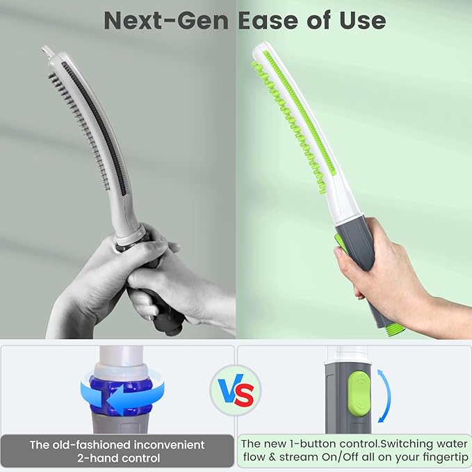 - 【Effortless Water Control】Petlipo dog shower head features an intuitive one-button water control system. Easily turn the water flow on or off with a single button press, ensuring you can quickly adjust the water supply without hassle. This design saves water and enhances your grooming efficiency.